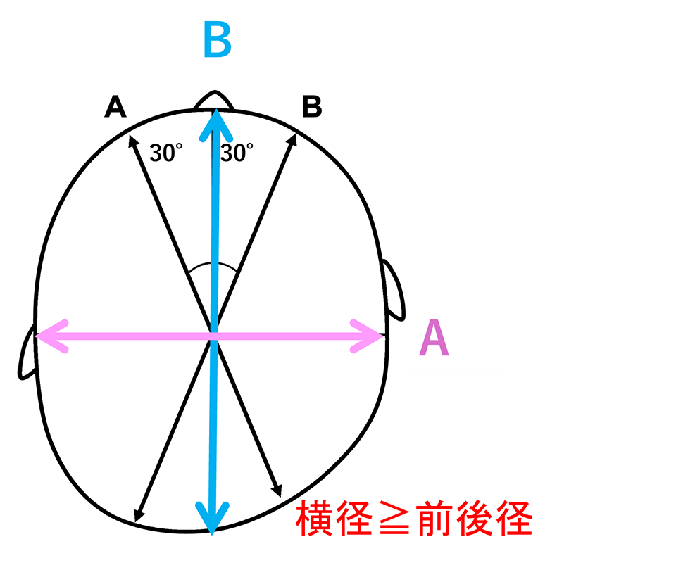 短頭症:頭部の前後径 ≤ 横径となっている場合