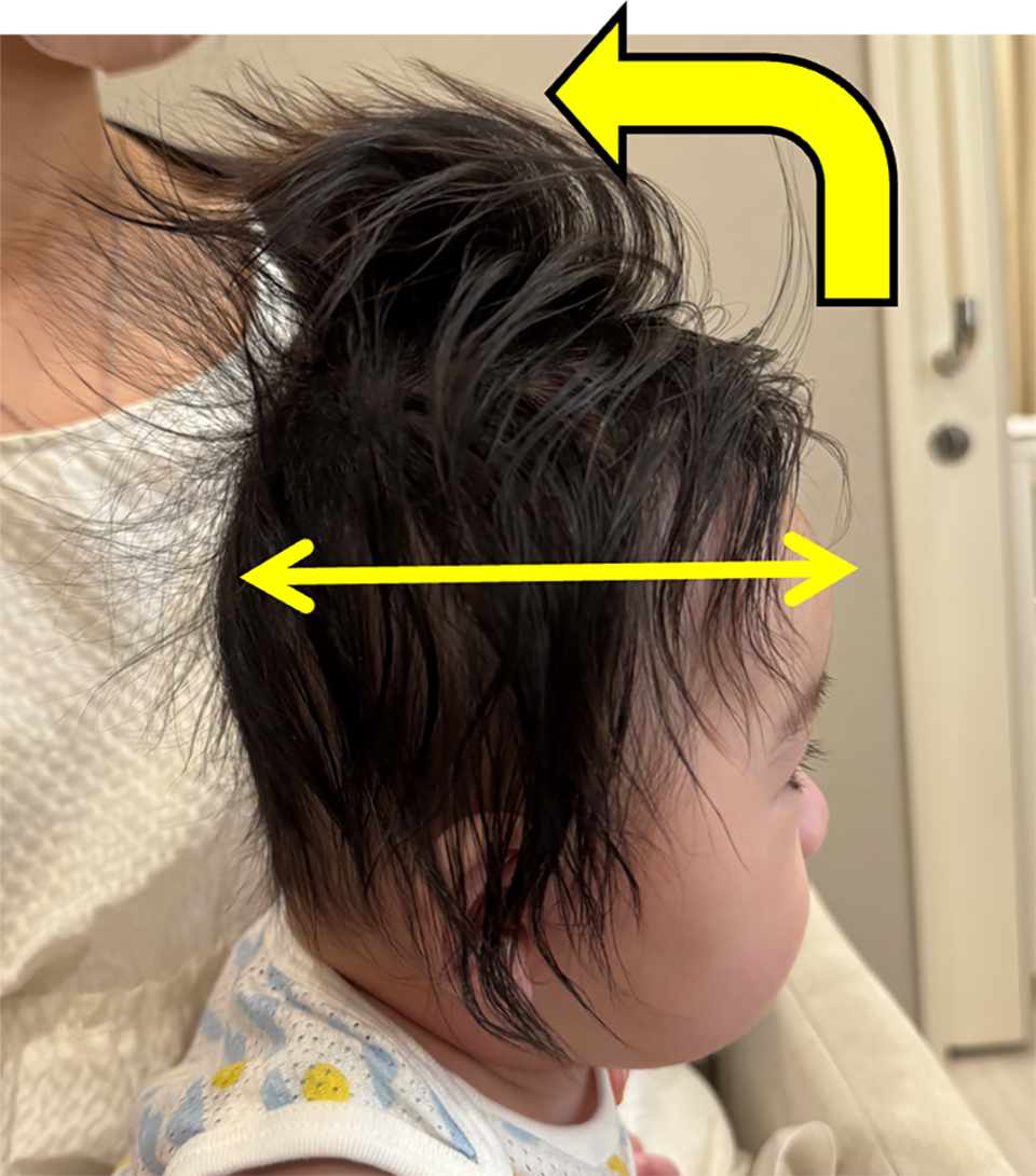 短頭症:後頭部が平らで絶壁になっている場合(洗髪した時に頭を横からも見てましょう)