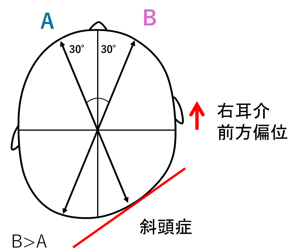 斜頭症:耳の位置に左右差がある場合