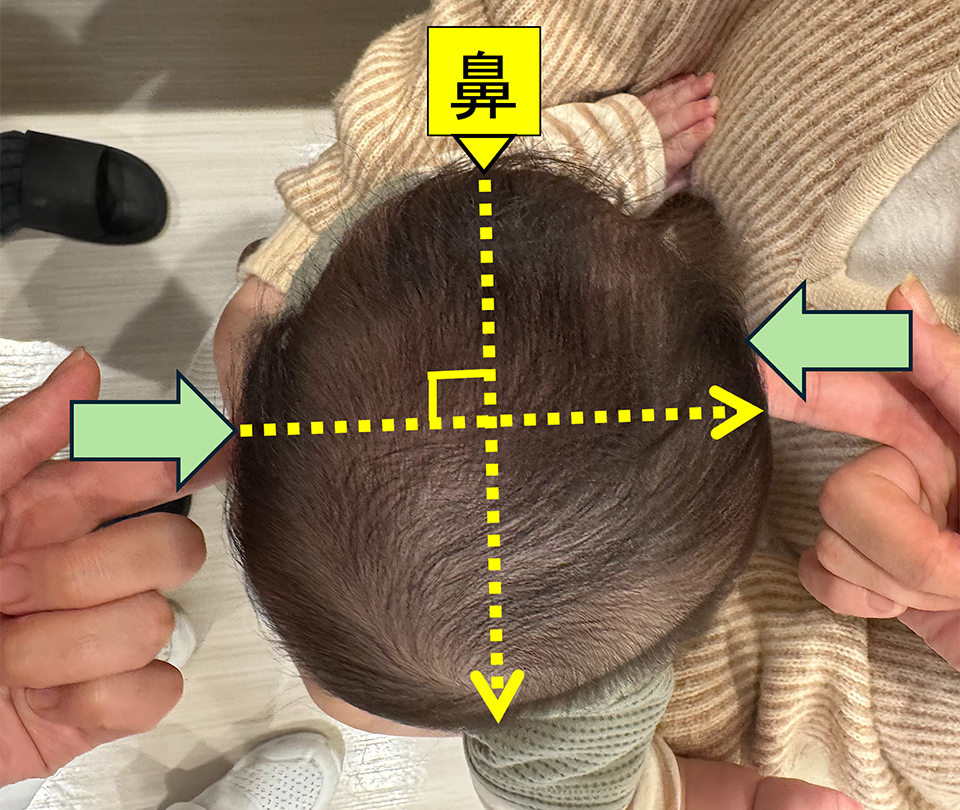 斜頭症は耳の位置のずれ、短頭症は頭の横幅がポイントです